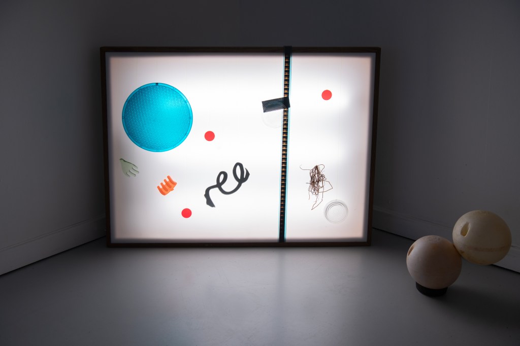 Between Work and Play is an exhibition that explores the tension between seemingly opposing states. Bringing together Helen Maurer, Helen Pailing and Graham Patterson in a lively exchange of light, shadow and transformed everyday materials, speak to creatures, the coastline and childhood memories. Driftwood, pins, glass and cast objects shape shift before your eyes, referencing the coastline’s dual relationship with industry and leisure. The artists share an experimental approach to making and retain a sense of playfulness often lost in adulthood. The works invite touch, spark curiosity and reveal new worlds in the simplest things, reminding us that reinvention is both playful yet urgent.