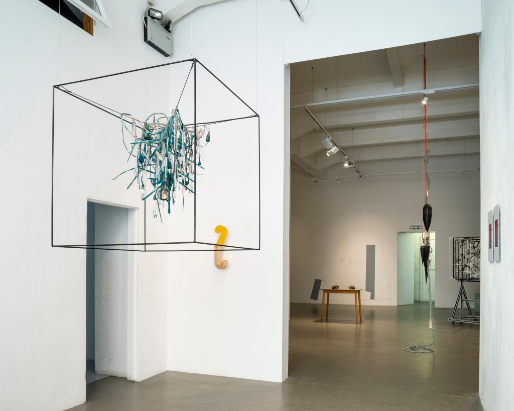 Curating a show with such a myriad of artist personalities, and diversity of textures, forms and techniques, was an absorbing and challenging task. If a current of connection evolved its to illustrate the collective enthusiasm of these artists, knitted together by their involvement with the m2 Gallery. Individual works covering a broad range of mediums, processes and materials spoke both independently and in relation to one another. The exhibition moved between the monumental and miniature, hard structure and soft abstraction, the intimate glance and the long gaze. Repeating shapes of metre square dimensions, a (loose) criteria for submitted work served to punctuate the space and direct the viewer through the exhibition.